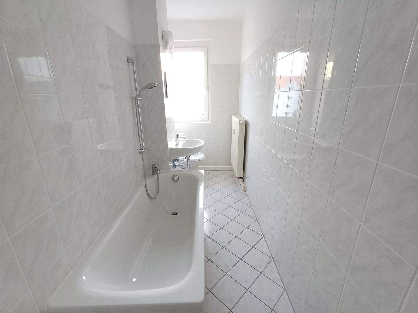Im Badezimmer ist eine Anschlußmöglichkeit für eine Waschmaschine.